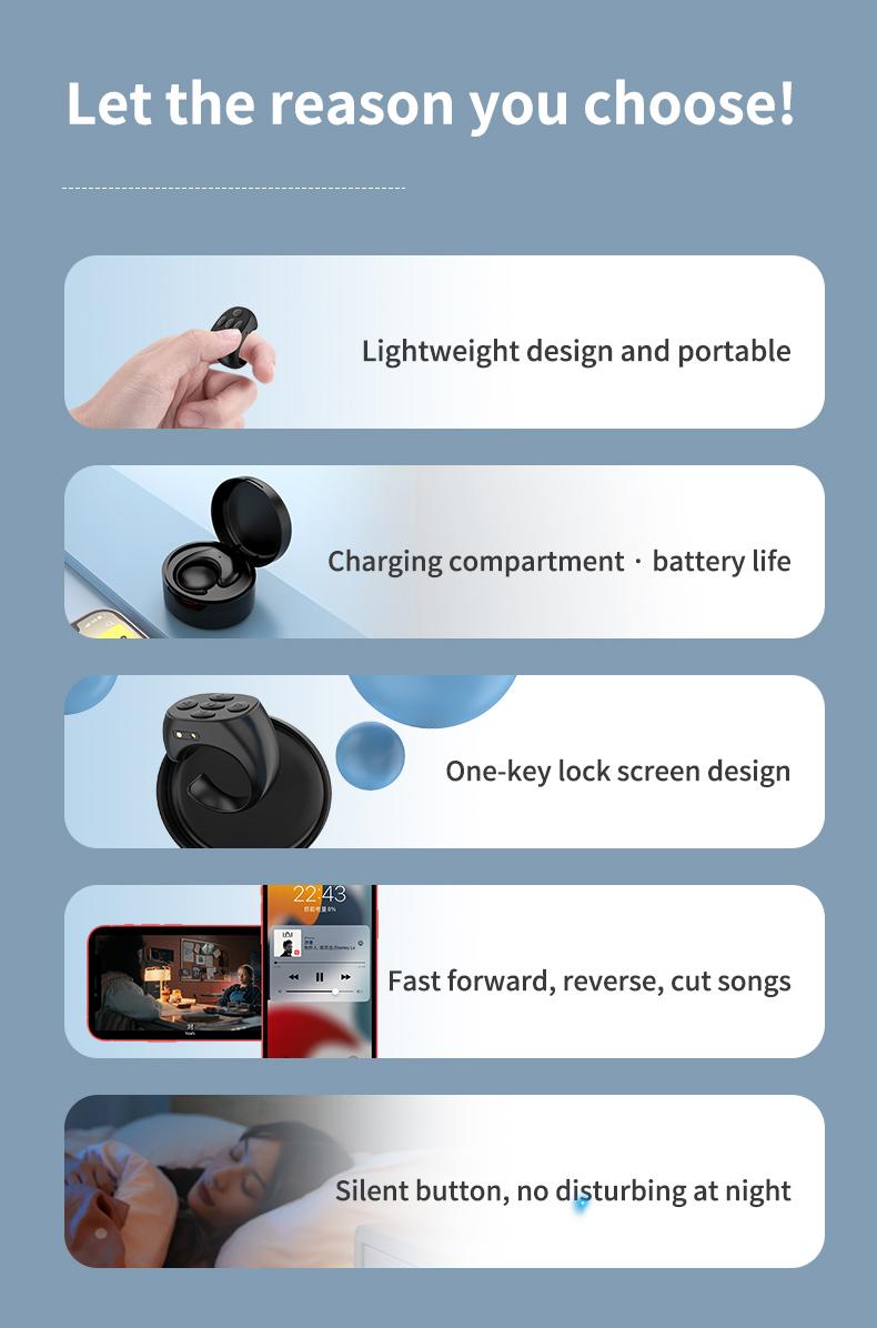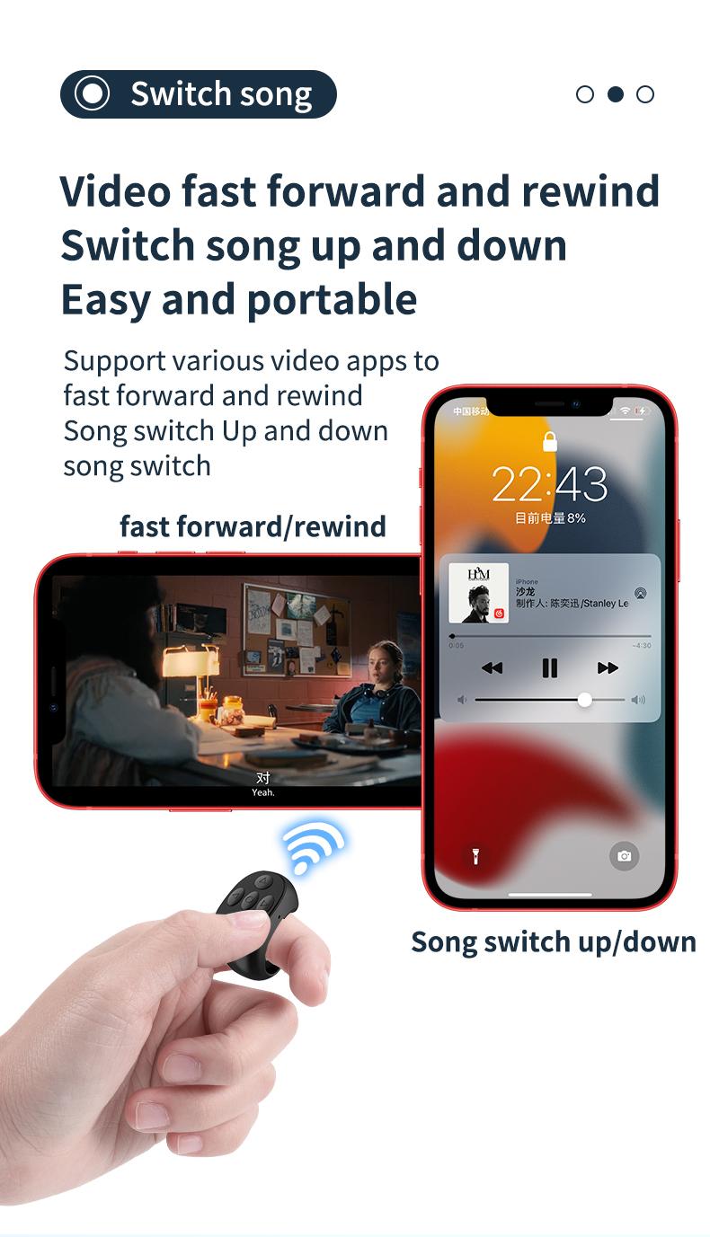Intelligent Design for TikTok The TikTok remote's intelligent design frees your hands for TikTok. Click the finger ring to scroll, swipe, pause, play, adjust volume, and like. No more constant screen - sliding.